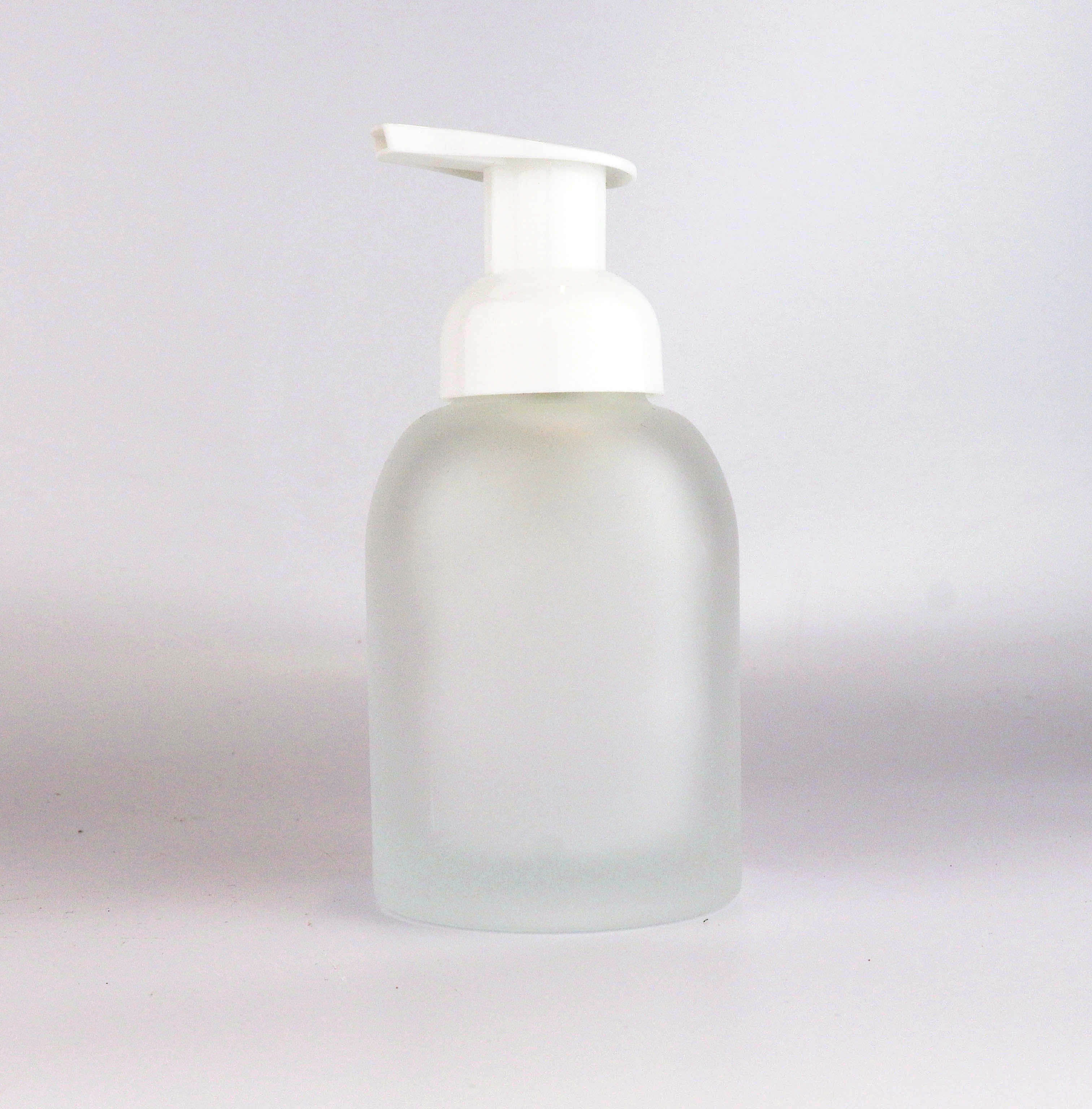 Glass empty foaming hand soap dispenser.